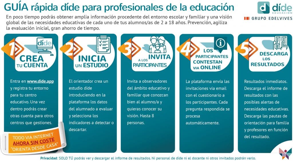 díde es una plataforma online de información de necesidades educativas que ayuda al menor y apoya a todos los agentes implicados en el proceso de desarrollo del niño, ya sean sus propios padres, los educadores o profesionales de la orientación, psicopedagogía y el neurodesarrollo.